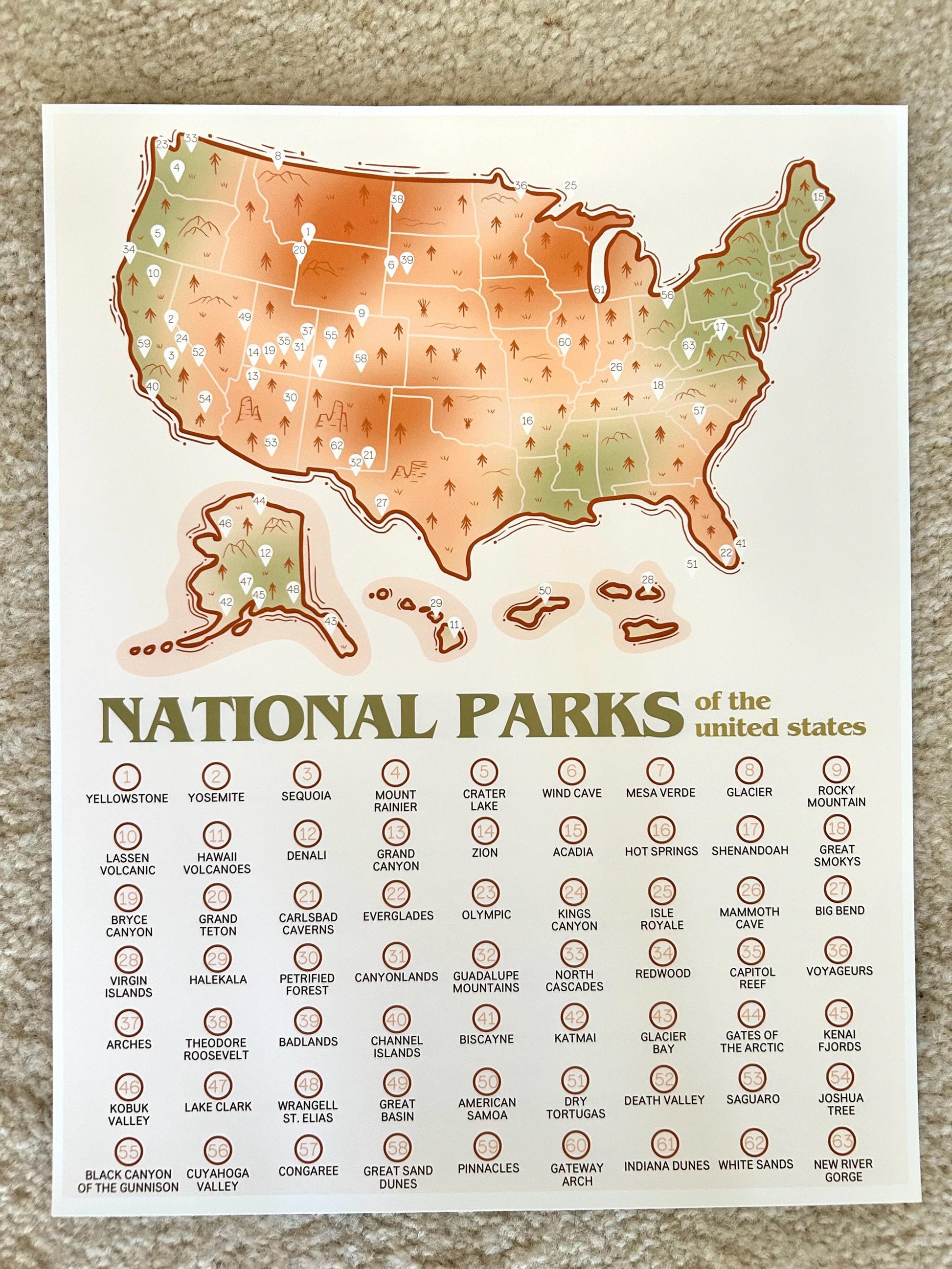 Whether you're an avid adventurer, a nature lover, or just starting your journey to visit all the parks, this map is a meaningful and stylish addition to your home. It also makes a thoughtful gift for outdoor