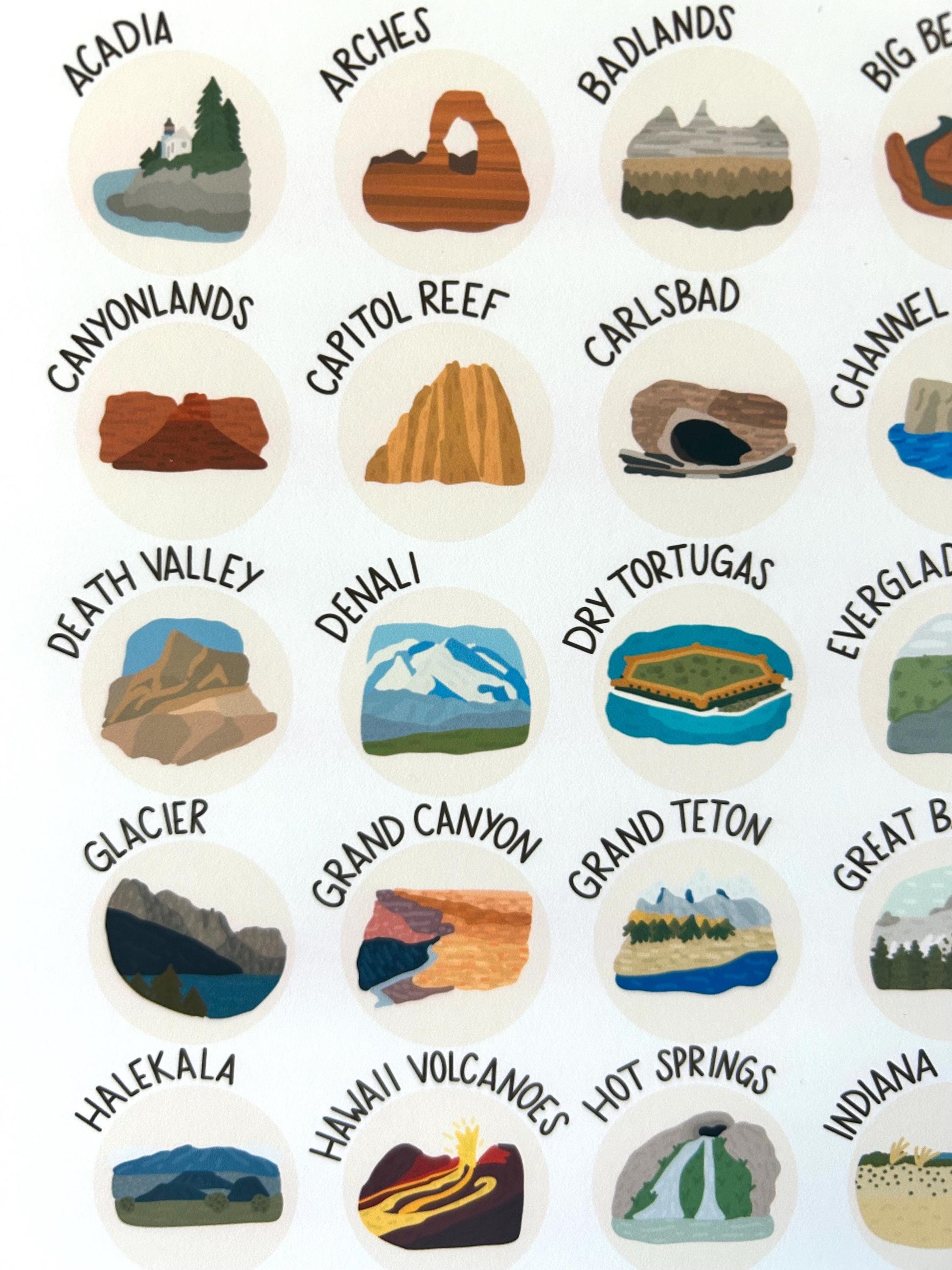 This listing is to order the physical print for the US National Parks Poster. This design is printed on high-quality matte paper, sized either 11"x14".